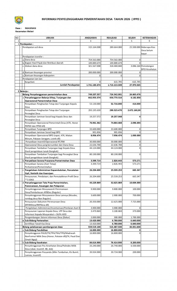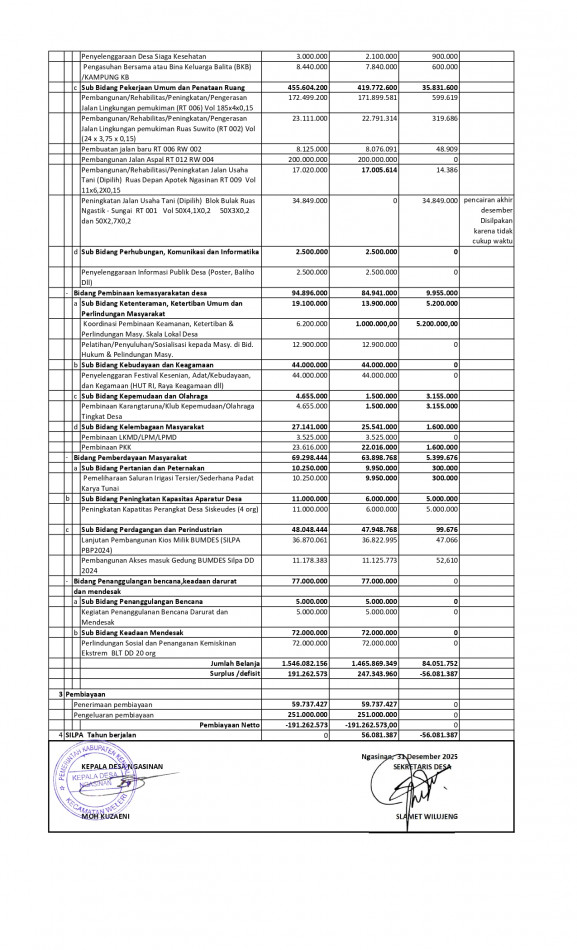 Penyusunan Laporan Kepala Desa, LPP Desa dan Informasi Kepada Masyarakat + SILPA ADD |